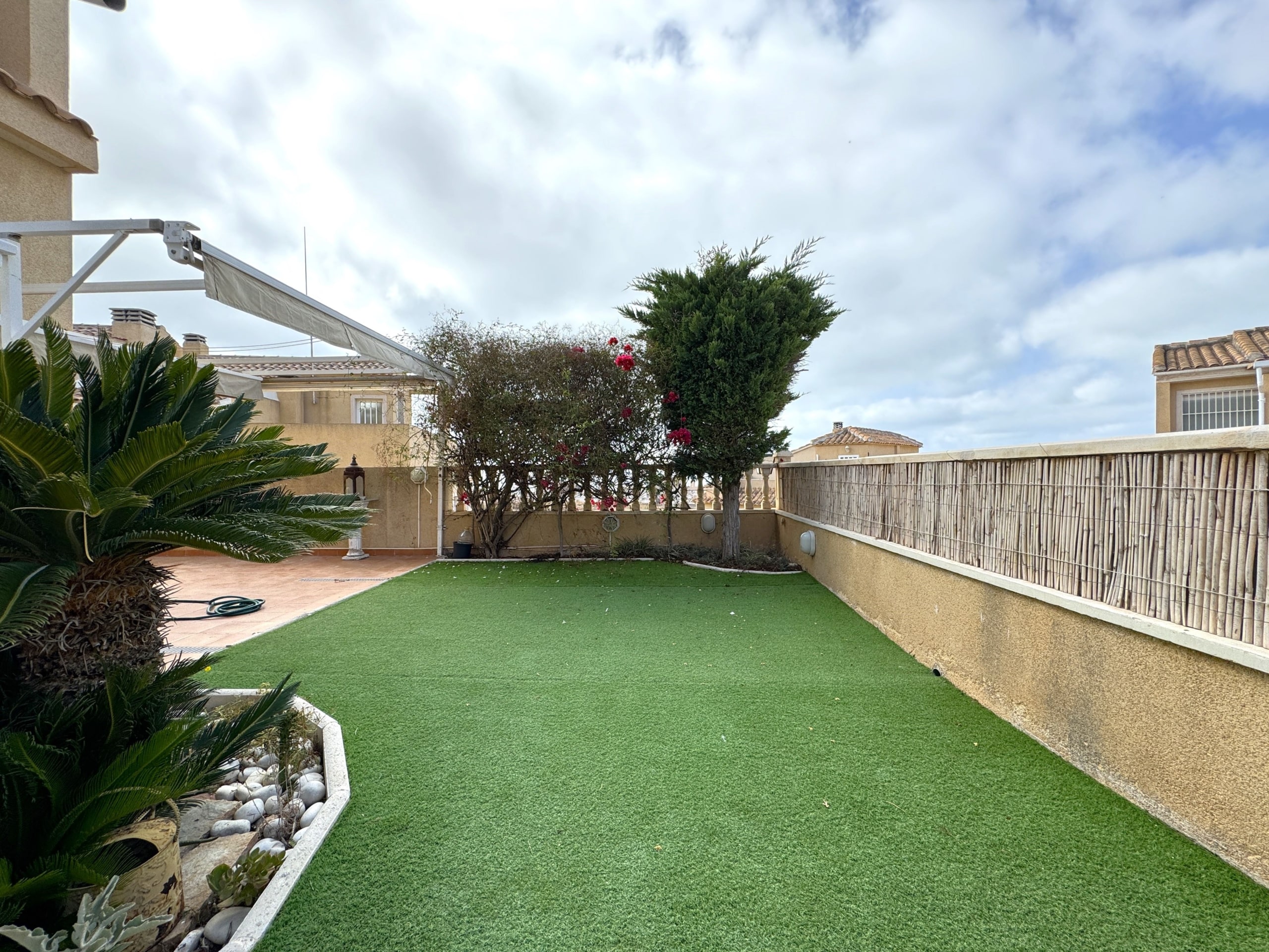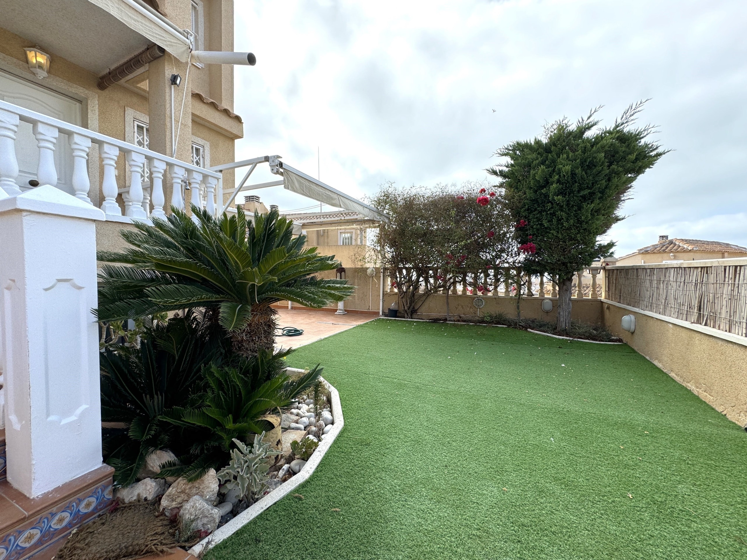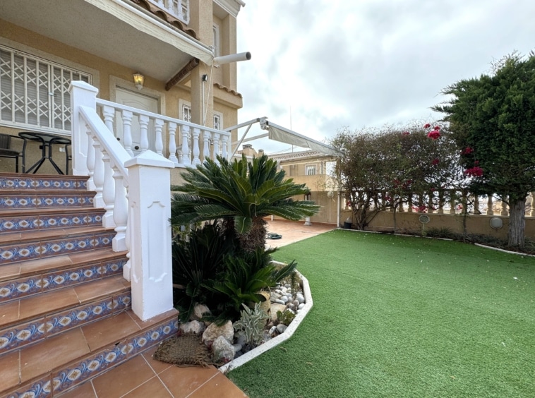 La vivienda tiene 3 plantas y hace esquina, disfruta de parcela propia con jardín y vistas al mar.