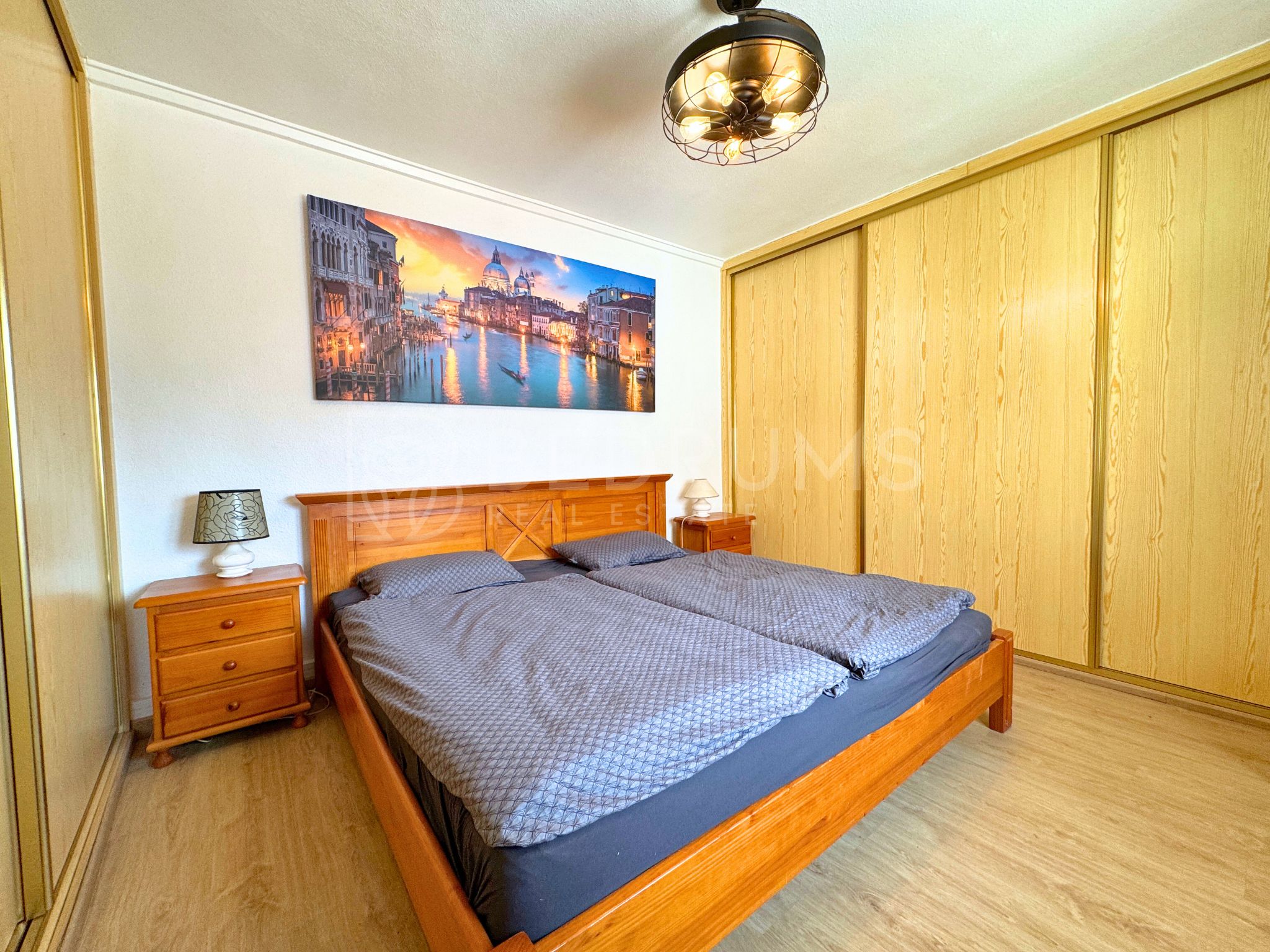 Entre sus equipamientos destacan la instalación de aire acondicionado por splits, armarios empotrados, cocina equipada, puerta acorazada, ventiladores de techo con lámpara, carpintería exterior climalit y rejas metálicas.