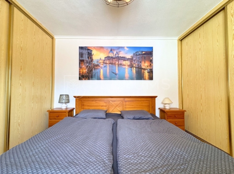 El interior se compone de 2 dormitorios dobles, un cuarto de baño completo, un salón amplio y acogedor, cocina con comedor y vestíbulo de entrada.