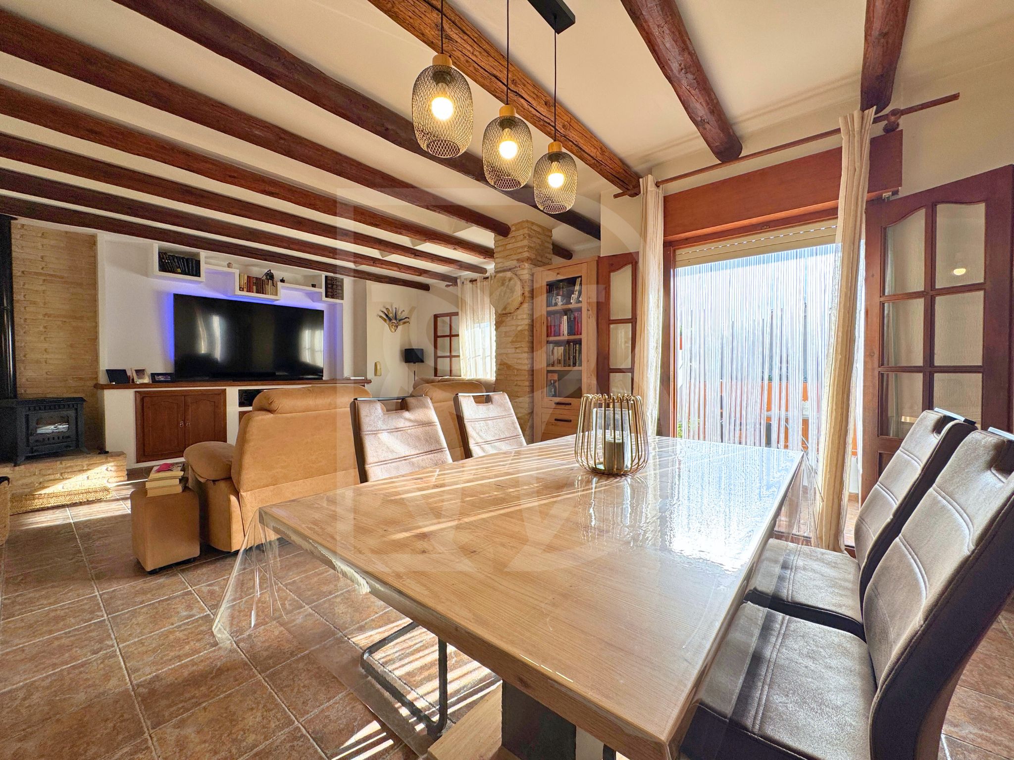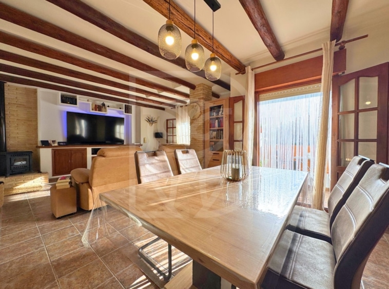 La vivienda principal, distribuida entre la primera y segunda planta, con una superficie de 140 m², combina un estilo rústico y mediterráneo que aporta calidez y carácter a cada estancia.