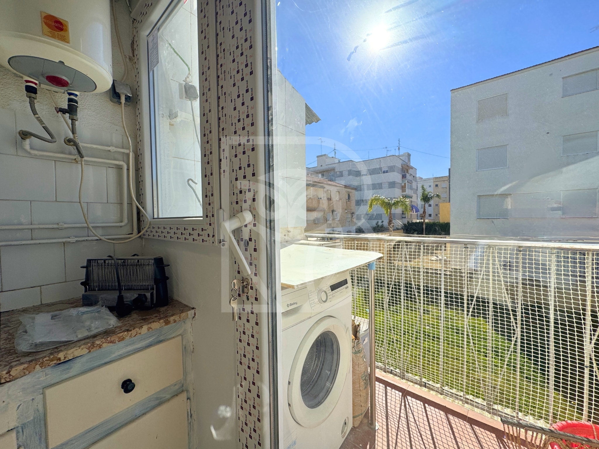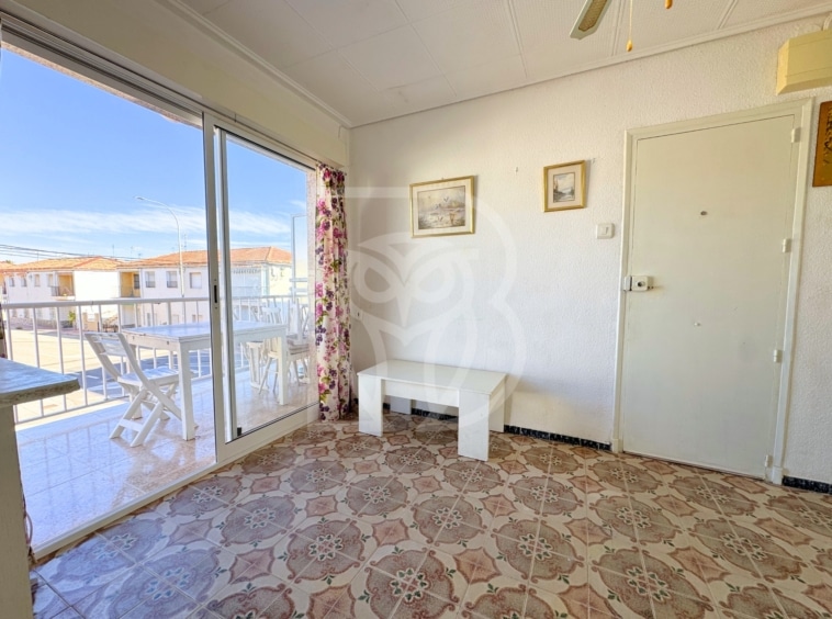 Cuenta con 60 m² de superficie distribuidos de forma eficiente en 3 dormitorios, un cuarto de baño, un espacio principal que integra recibidor, salón y comedor, cocina independiente con balcón trasero destinado a galería-lavadero y una terraza frontal con vistas abiertas, ideal para disfrutar del clima local y del tiempo al aire libre tras la jornada de playa.