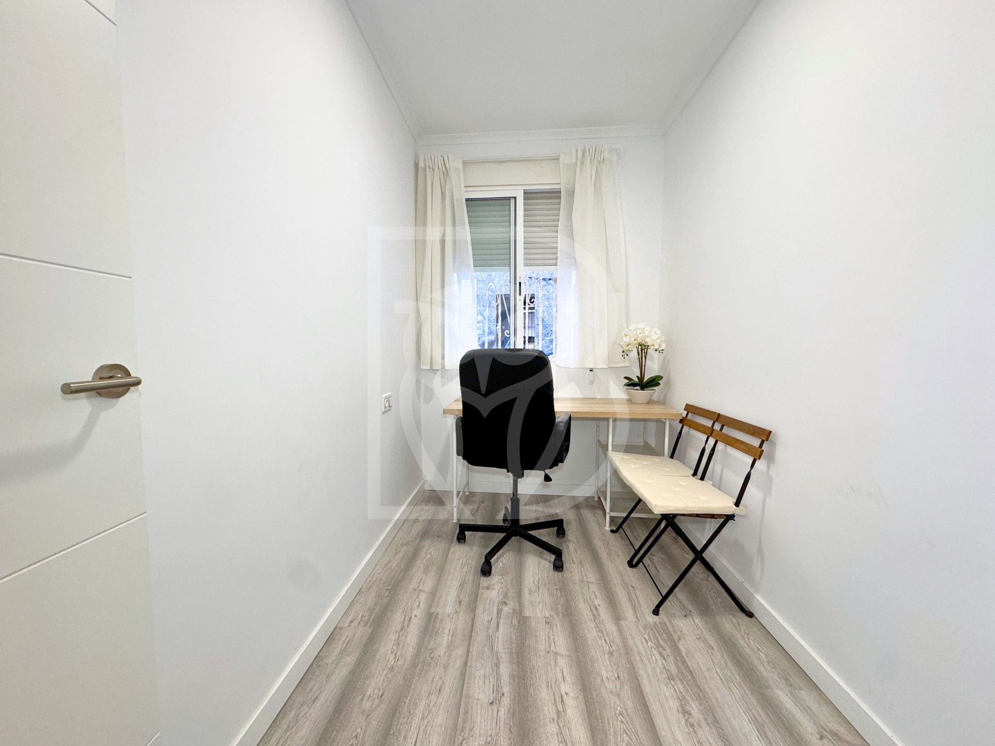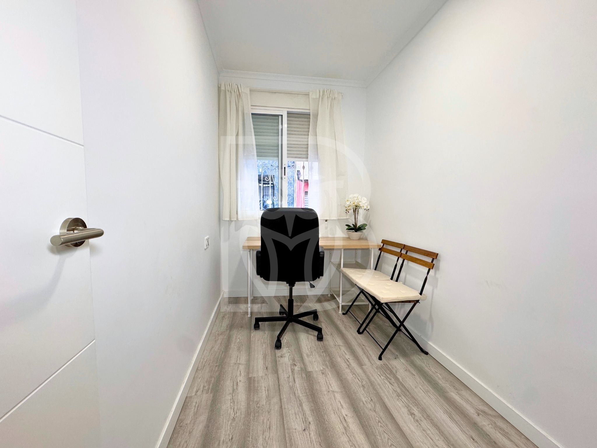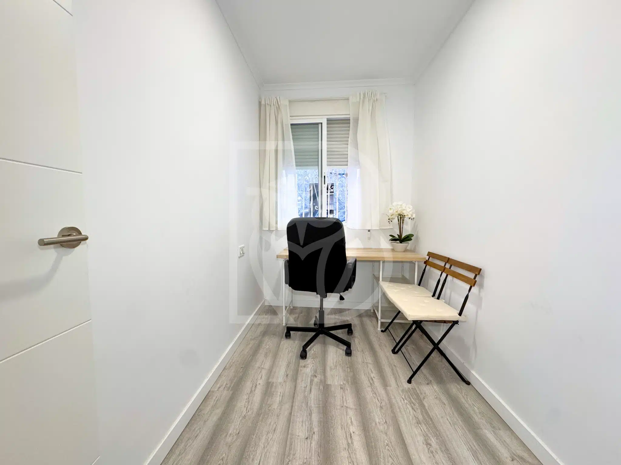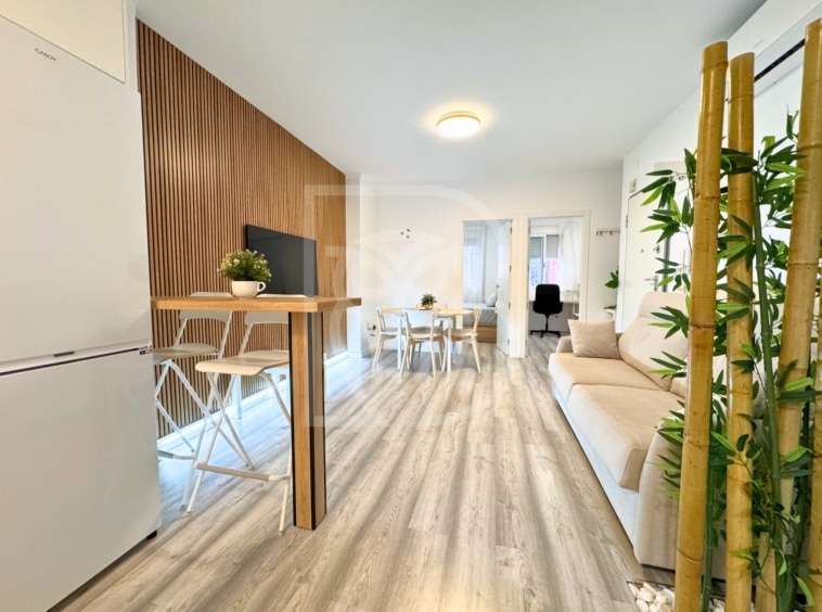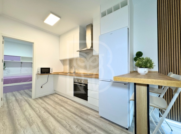 Entre sus calidades destacan el mobiliario y electrodomésticos incluidos, aire acondicionado por split, cocina totalmente equipada, suelos vinílicos en tono gris, iluminación LED, puerta de seguridad, carpintería interior lacada en blanco y carpintería exterior de aluminio con rejas metálicas.