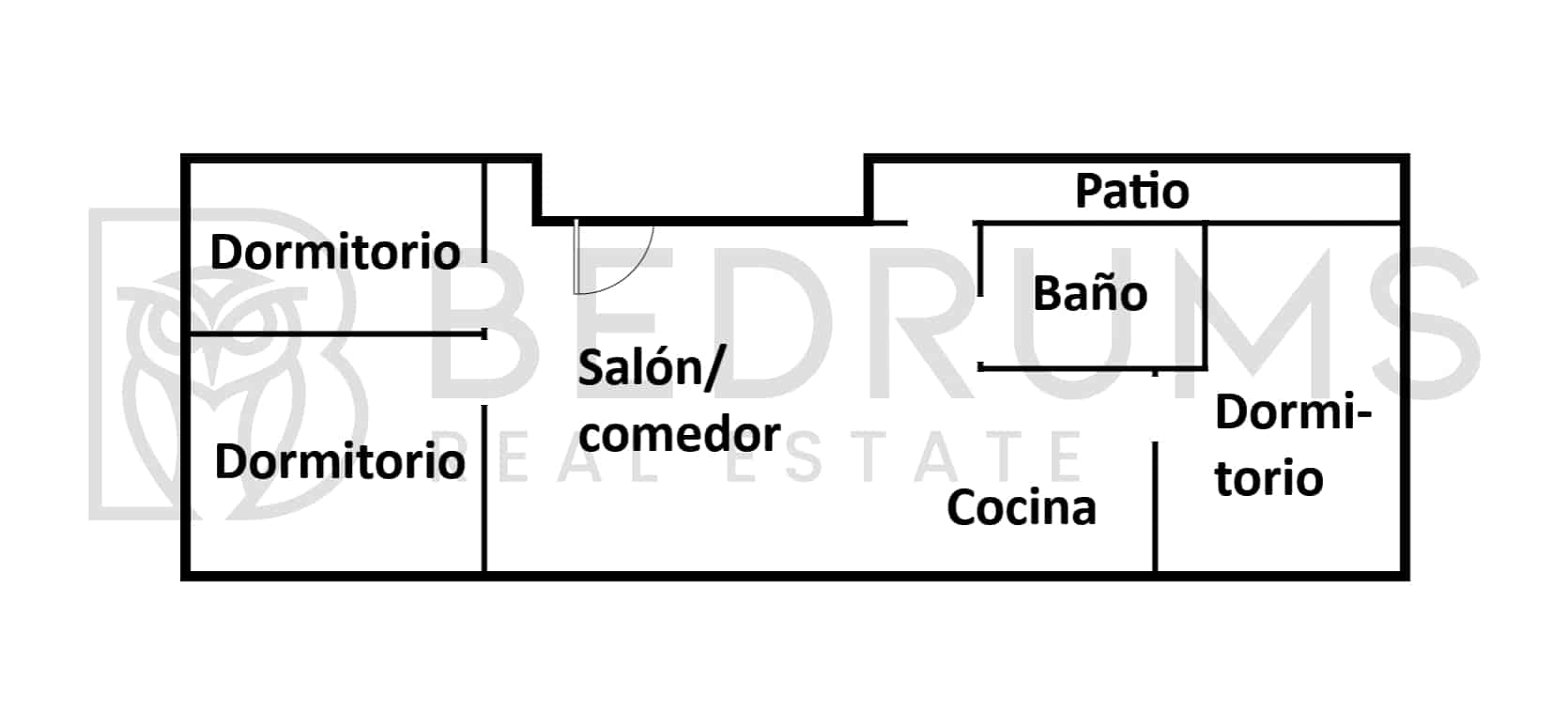 El interior se organiza en un espacio principal diáfano de concepto abierto, donde salón, comedor y cocina se integran de forma fluida y funcional. La distribución se completa con tres dormitorios, un cuarto de baño y un patio privado con zona de lavadero, aportando practicidad y desahogo al conjunto.