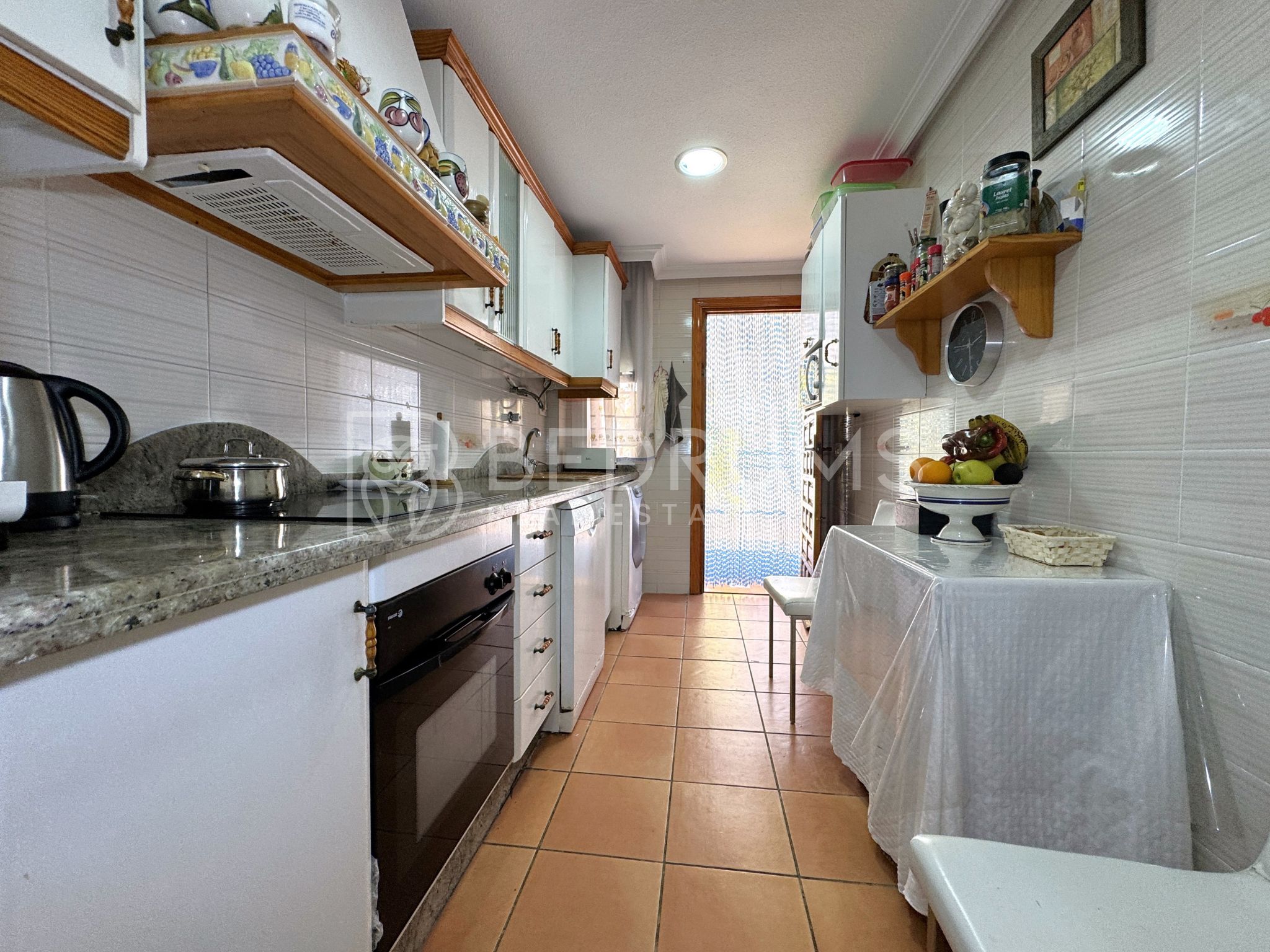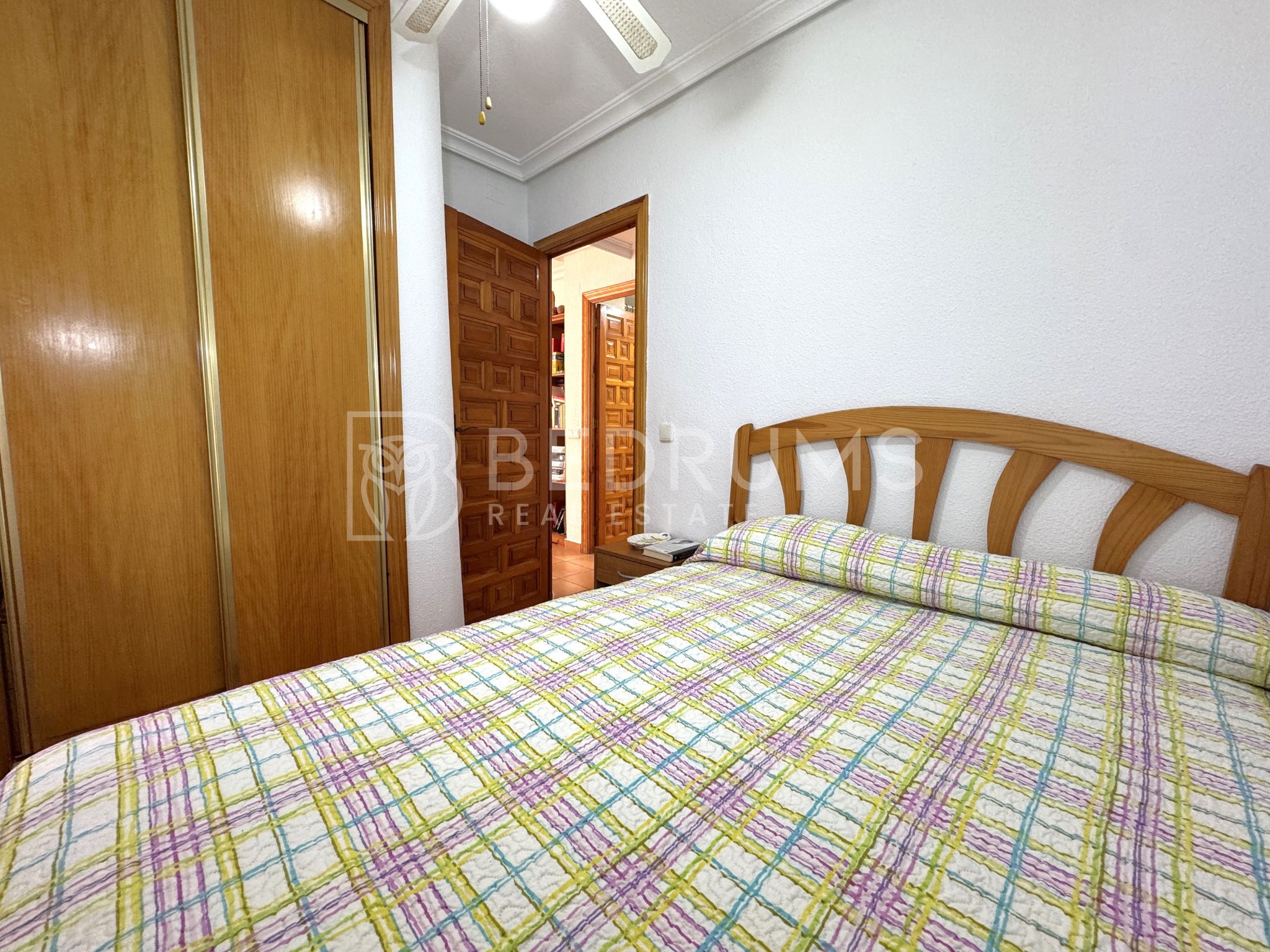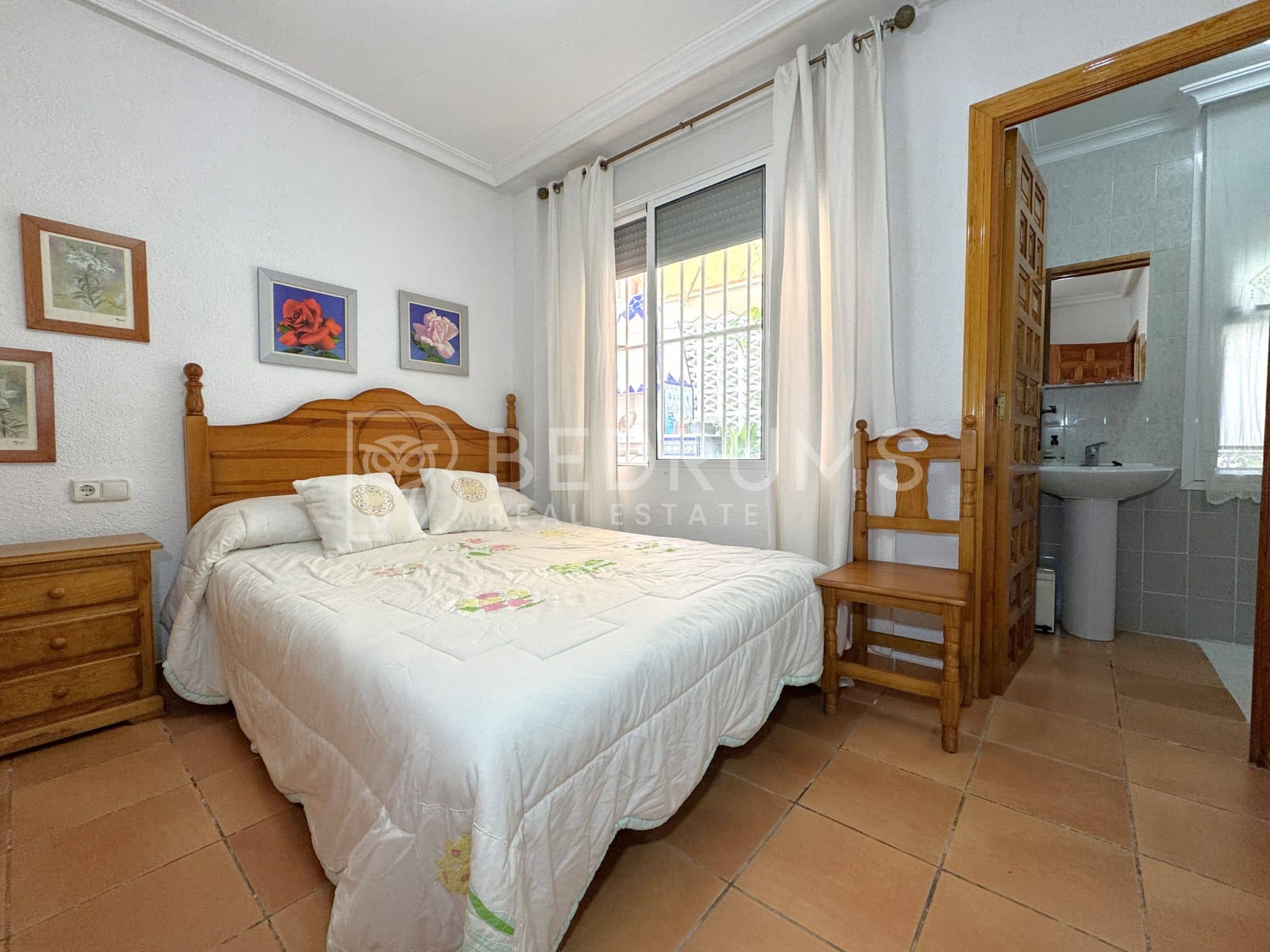 Entre su equipamiento destacan el dormitorio principal con cuarto de baño en suite, cocina totalmente equipada, armarios empotrados, aire acondicionado, chimenea, ventiladores de techo con lámpara, carpintería exterior de aluminio-climalit con rejas metálicas y mosquiteras, así como una estructura exterior con guías y toldos correderos que amplía las opciones de uso de la terraza durante todo el año.