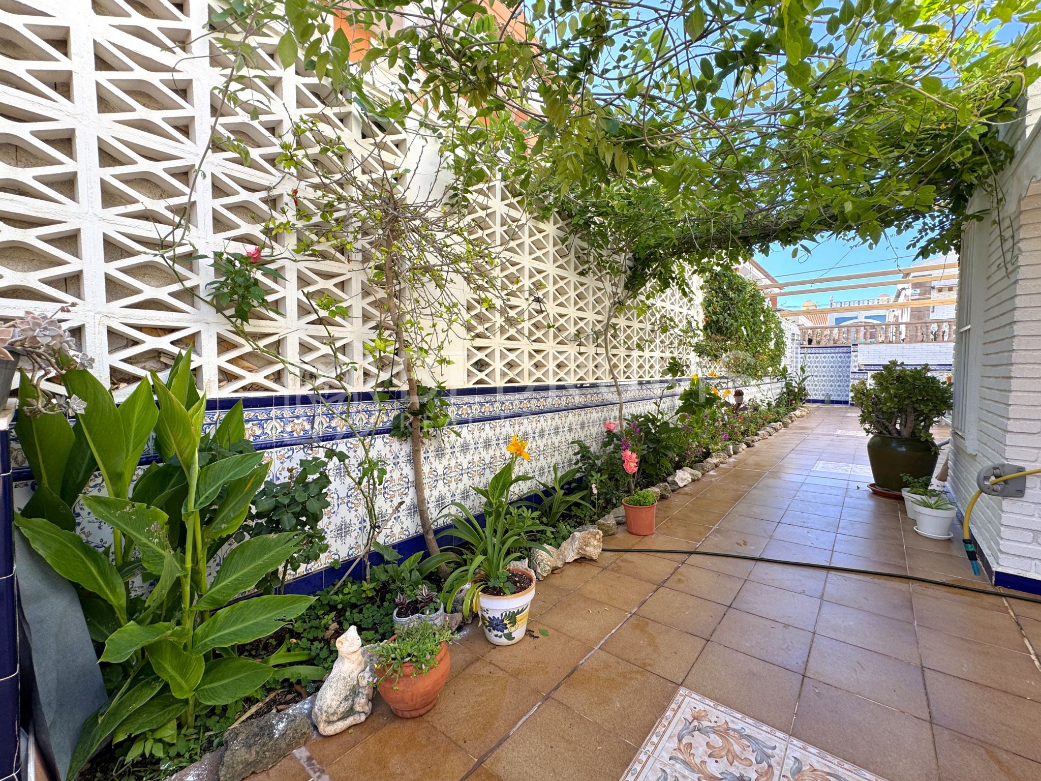 Cuenta con una espectacular terraza privada de 100 m² que rodea la casa y ofrece diferentes ambientes como una zona ajardinada, una barbacoa perfecta para las reuniones en familia o amigos y una práctica ducha exterior ideal para después de un día de playa.
